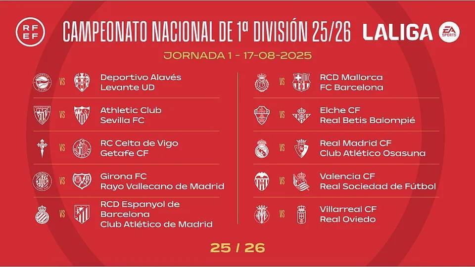 2025-26赛季西甲首轮对阵: